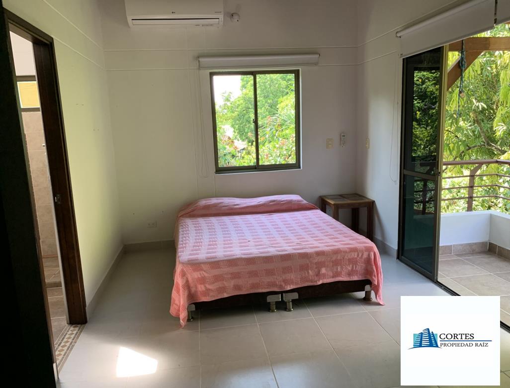 Tiene dos niveles, cuatro alcobas, con baño y aire acondicionado, cocina integral sala y comedor, terraza, piscina, bbq, fogon en la zona de afuera.